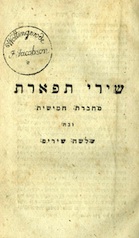 67. Wessely, Naphtali Herz, Shire tif'eret: hibur kolel shemonah 'asar shirim (…), Vol. 5.
