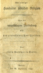 19. Friedländer, David, Sendschreiben an Seine Hochwürden, Herrn Oberconsistorialrath und Probst Teller zu Berlin.